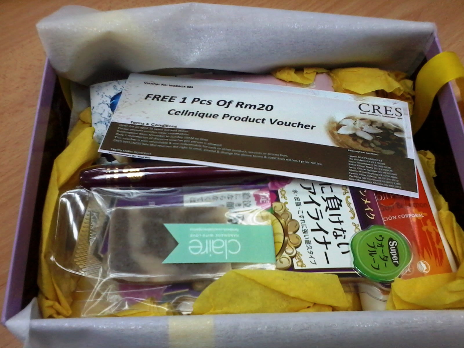 so then the next box i was due to receive was wonderbox. i was like tak sabar-sabar je.. cause from the first box, i was so excited to know what surprise i will receive! so i search high and low for any reviews.. stalked their facebook to see if there is any hint.... and yeah!! yes! i found a review of this month's box!